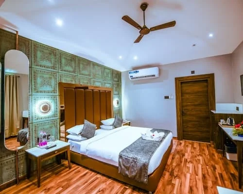 Discover elegant, spacious rooms featuring modern interiors, plush bedding, air-conditioning, and serene surroundings for the ultimate relaxation.